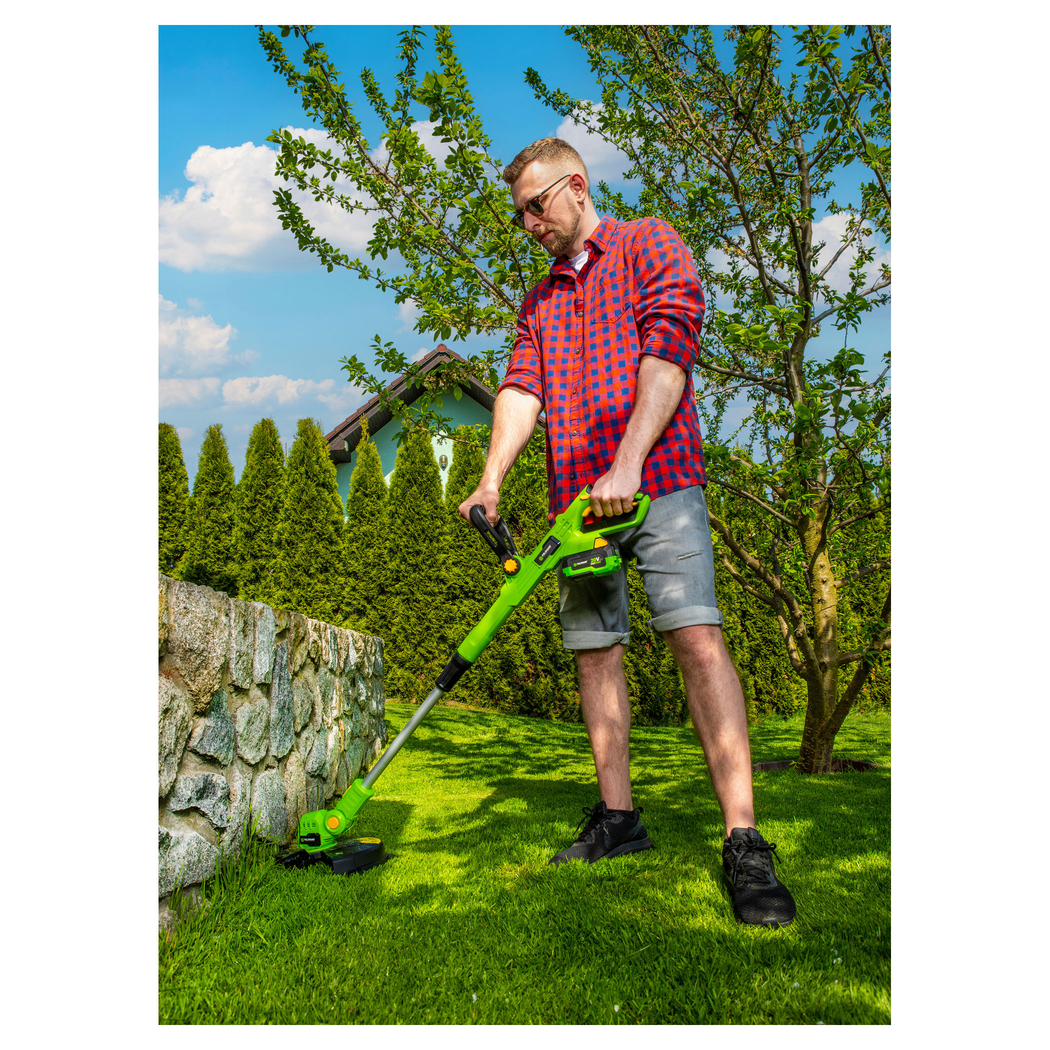 Detaily podél chodníčků, stěn nebo opečovávaných okrasných květin jednoduše upravíte pomocí aku sekačky Fieldmann. K jejímu chodu slouží jeden 20V akumulátor, který perfektně vyvažuje žací hlavu, takže práce s ním je velmi jednoduchá a obratná. Komfortu napomáhá také teleskopické madlo, nastavitelný úhel žací hlavy, vodicí kolečko pro sečení podél zdí a distanční oblouk pro ochranu rostlin. Automaticky doplňující se struna o síle 1,6 mm má rozsah sečení až 300 mm.
