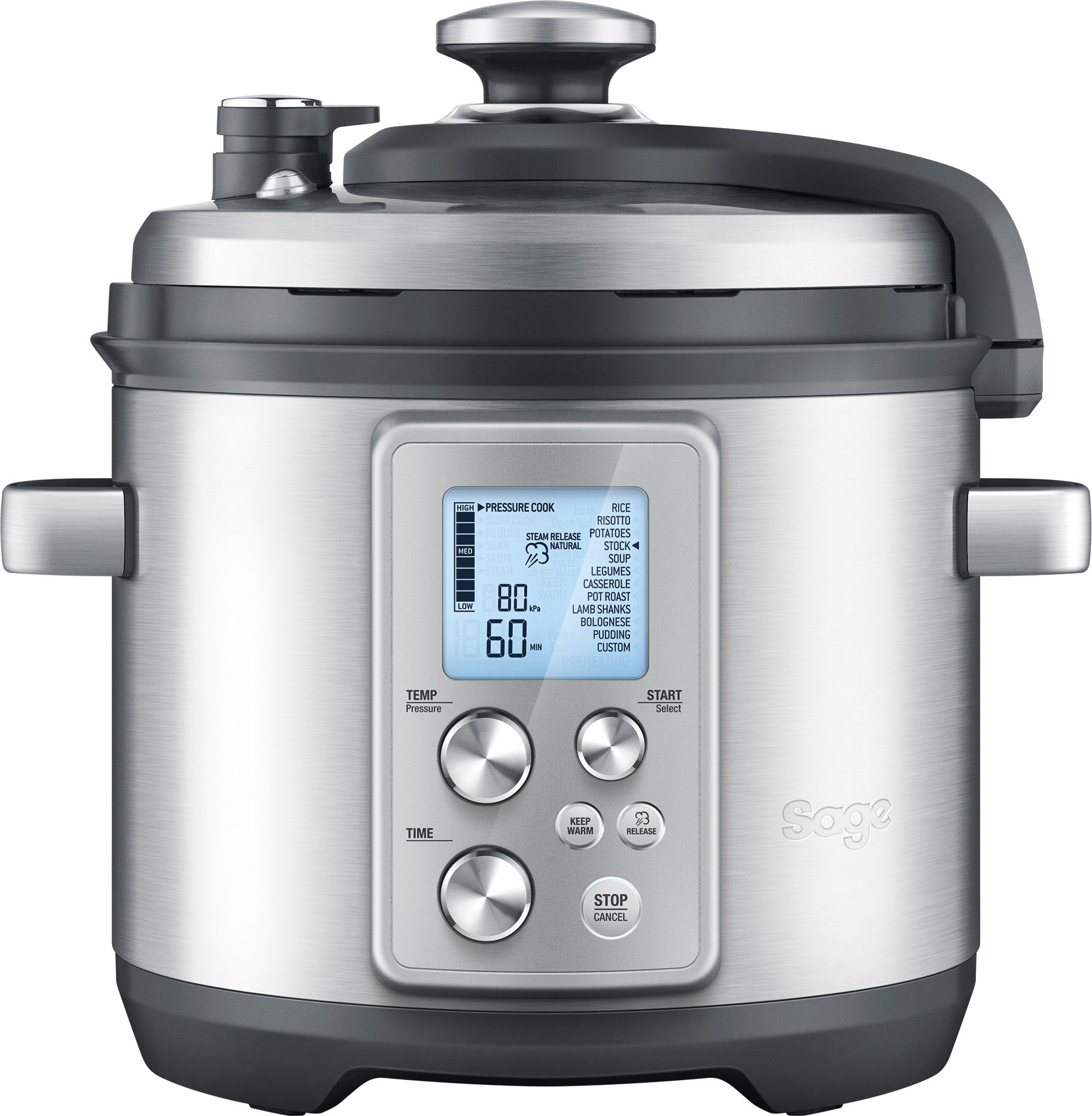 Multifunkční elektrický tlakový hrnec Sage The Fast Slow Pro spojuje automatické tlakové vaření se stále populárnějším „pomalým“ vařením. Dokáže automaticky nastavit ideální kombinaci času, teploty a tlaku mezi rychlou a pomalou úpravou, a to vše hlídá prostřednictvím duálních snímačů na horní a dolní části hrnce. Výsledkem je pak maximální chuť a ideální konzistence pokrmu. Hrnec nabízí 6 chytrých programů pro snadnou a rychlou volbu – vaření pod tlakem, pomalé vaření, zahušťování, opékání, restování a přípravu v páře. Cena: 6 499 Kč