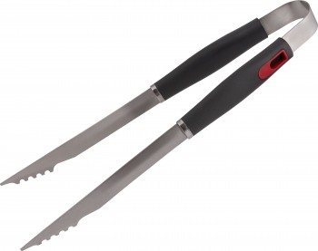 Praktické protiskluzové kleště jsou vyrobeny z nerezové oceli a na koncích jsou opatřeny zoubkováním pro lepší uchycení jídla. Ideální pro obracení steaků i zeleniny. Měkká rukojeť pro bezpečnou manipulaci. Délka kleští 40 cm.