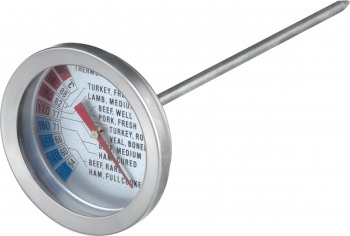 Teplota při grilování je velmi důležitá a s tímto teploměrem budete mít přehled, kdy je maso hotové. Nerezová sonda s hliníkovým ciferníkem má v sobě i malý „tahák“ pro případ, kdybyste nevěděli, při jaké teplotě je steak či pečeně správně propečená. Vhodný i do trouby.