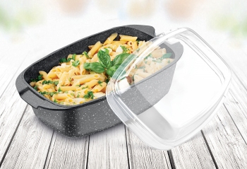 Brambory jsou snadné na pěstování i uchovávání a stávají se z nich stálice našich zahrad. Malé, jarní brambůrky ve šlupce s krémovým sýrem a pažitkou známe všichni z dětství a kdo by si myslel, že tento prostý recept není možno povýšit, mýlil by se. Úžasné brambory Louisiane jsou ideální jako svěží studený oběd či příloha ke grilovanému masu. Aby se brambory rovnoměrně upekly, použijte pekáč se skleněnou poklicí Lamart ROCK s vnitřním nepřilnavým marble materiálem, který je odolný proti oděru i připalování. Silnostěnné dno uchová konstantní pečící teplotu, prakticky tvarovaná rukojeť poskytne pevný a bezpečný úchop při manipulaci z a do trouby. Pekáč je vhodný pro plyn, elektriku i sklokeramiku.