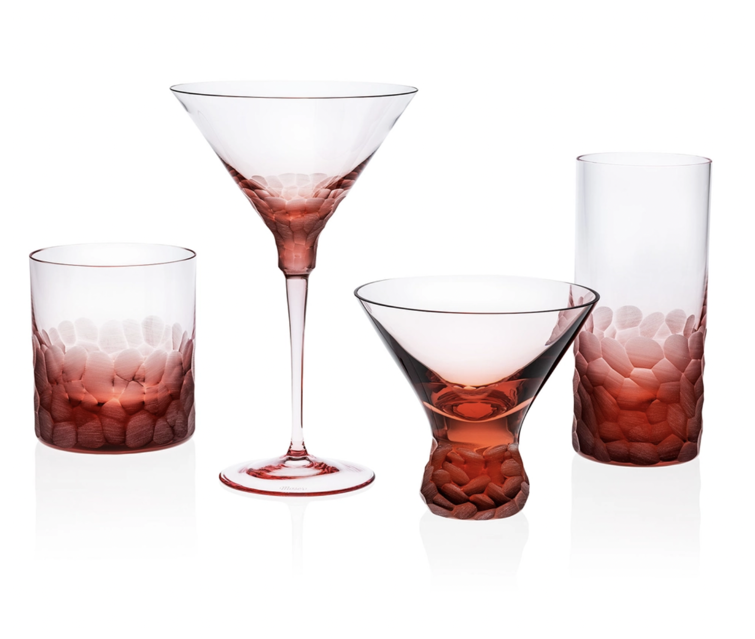 Coctail set vznikl spojením Whisky setu, jednoho z nejpopulárnějších souborů sklárny Moser, se souborem Fluent. Sestava je obohacená o dekor pebbles – hrubou strukturu kamenů. Výbrus ve stylu „art brut“ podtrhuje čiré provedení křišťálu i celá paleta moserovských barev, které zdůrazňují kontrast mezi silným dnem a tenkými stěnami sklenic.