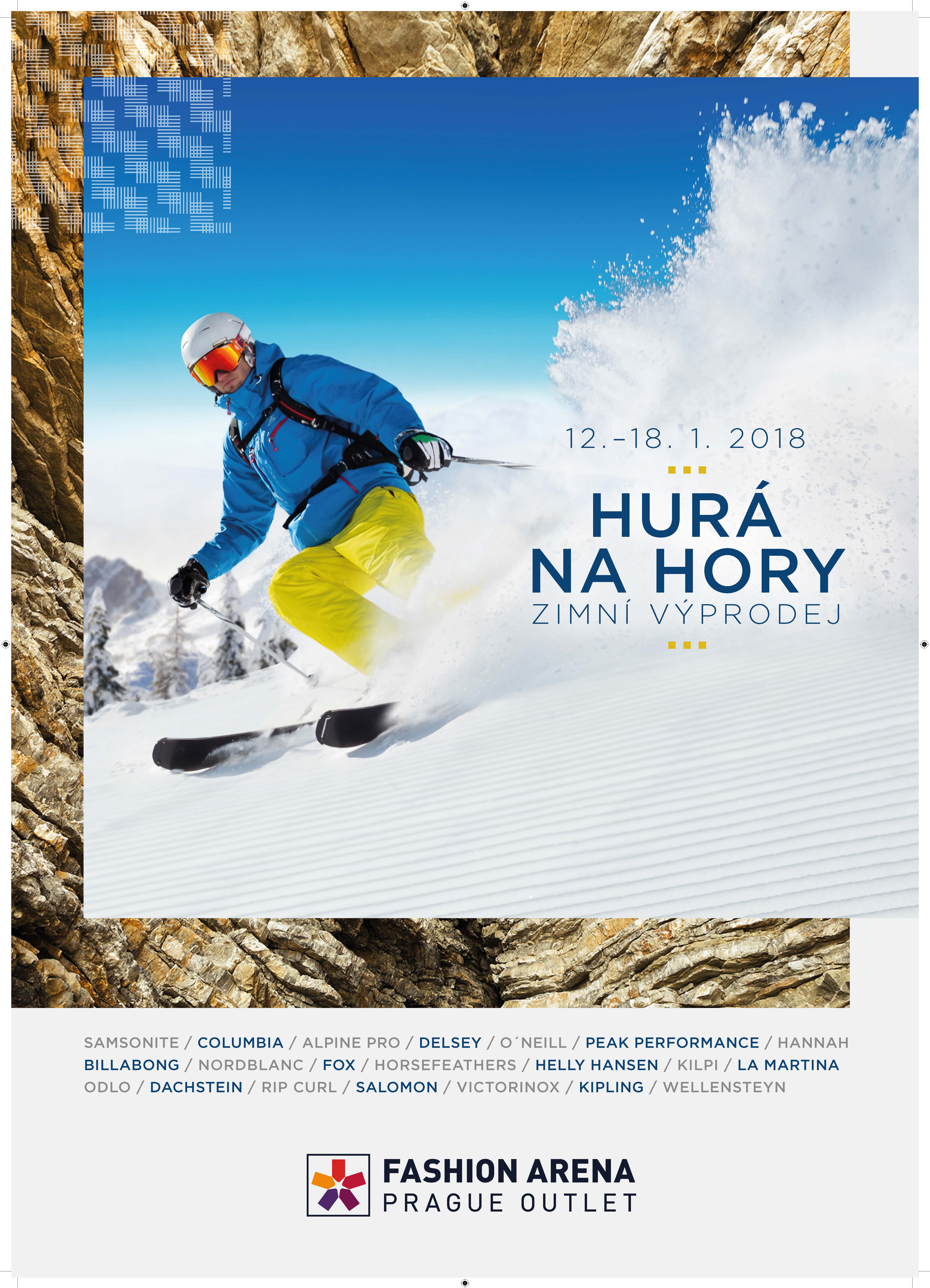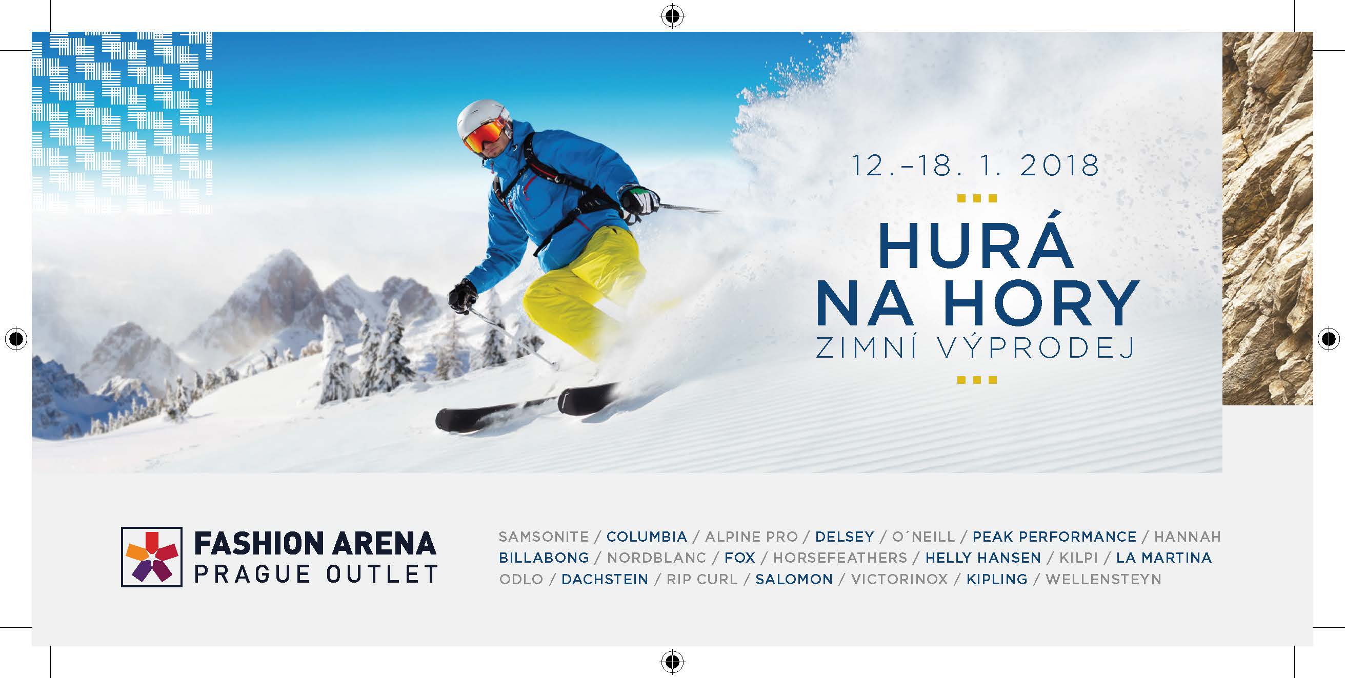 Největší outletové centrum v České republice Fashion Arena Prague Outlet i letos ve dnech od 12. – 18. ledna opakuje mimořádnou akci „Hurá na Hory“, během nichž nabízí zimní oblečení a výbavu světových značek s extra slevami z outletových cen. Tuto prodejní akci podporuje komunikačními aktivitami v online, na sociálních sítích, v tištěných médiích i komunikací v rámci centra.