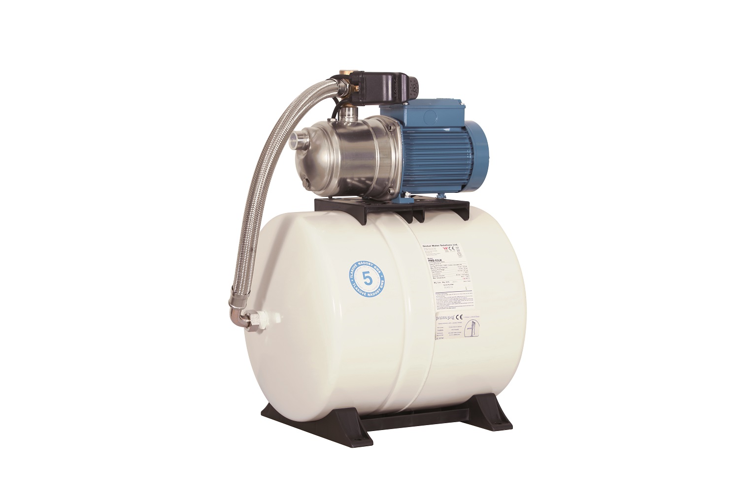 Celý komplet domácí vodárny se skládá z čerpadla, tlakové nádoby s manometrem a tlakovým spínačem nainstalovaným na tzv. pěticestné armatuře. Při poklesu tlaku v soustavě (např. otevřením kohoutku) pod nastavený zapínací tlak tlakový spínač automaticky sepne čerpadlo a vypne jej při dosažení nastaveného vypínacího tlaku. Tlaková nádoba (nejčastěji v objemu 60–80 l) zabraňuje častému spínání čerpadla, a při jejím pořízení se především řiďte objemem vody, který v domácnosti spotřebujete. „Výkon domácí vodárny je vždy určen výkonem čerpadla a tlaková nádoba na něj nemá vliv,“ prozrazuje Martin Křapa.