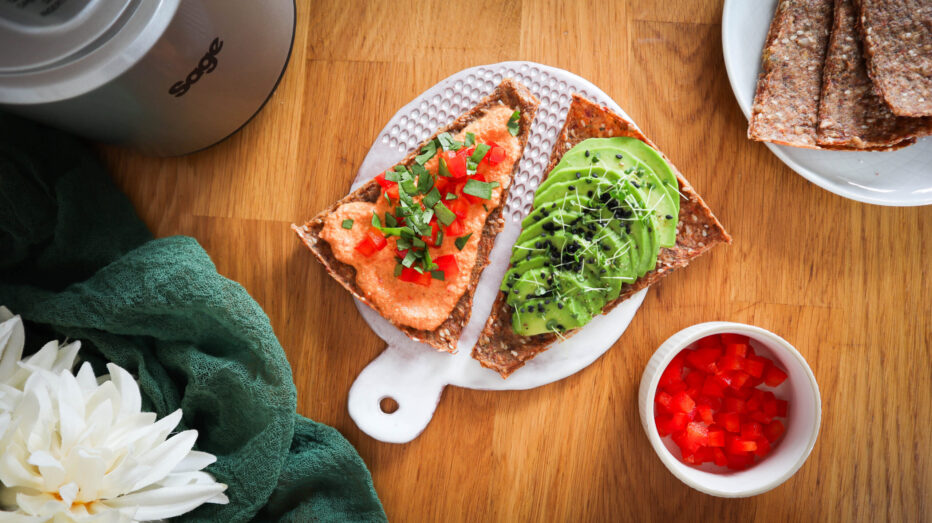 Do nádoby od mixéru dejte propláchnutá slunečnicová a sezamová semínka, přidejte sušená rajčata v oleji a dužinu z odšťavnění. Vše důkladně rozmixujte a směs přidejte do mísy ke lněné směsi a pořádně zamíchejte. Krekry pak můžete připravit dvěma způsoby – usušit v sušičce anebo upéct v troubě.