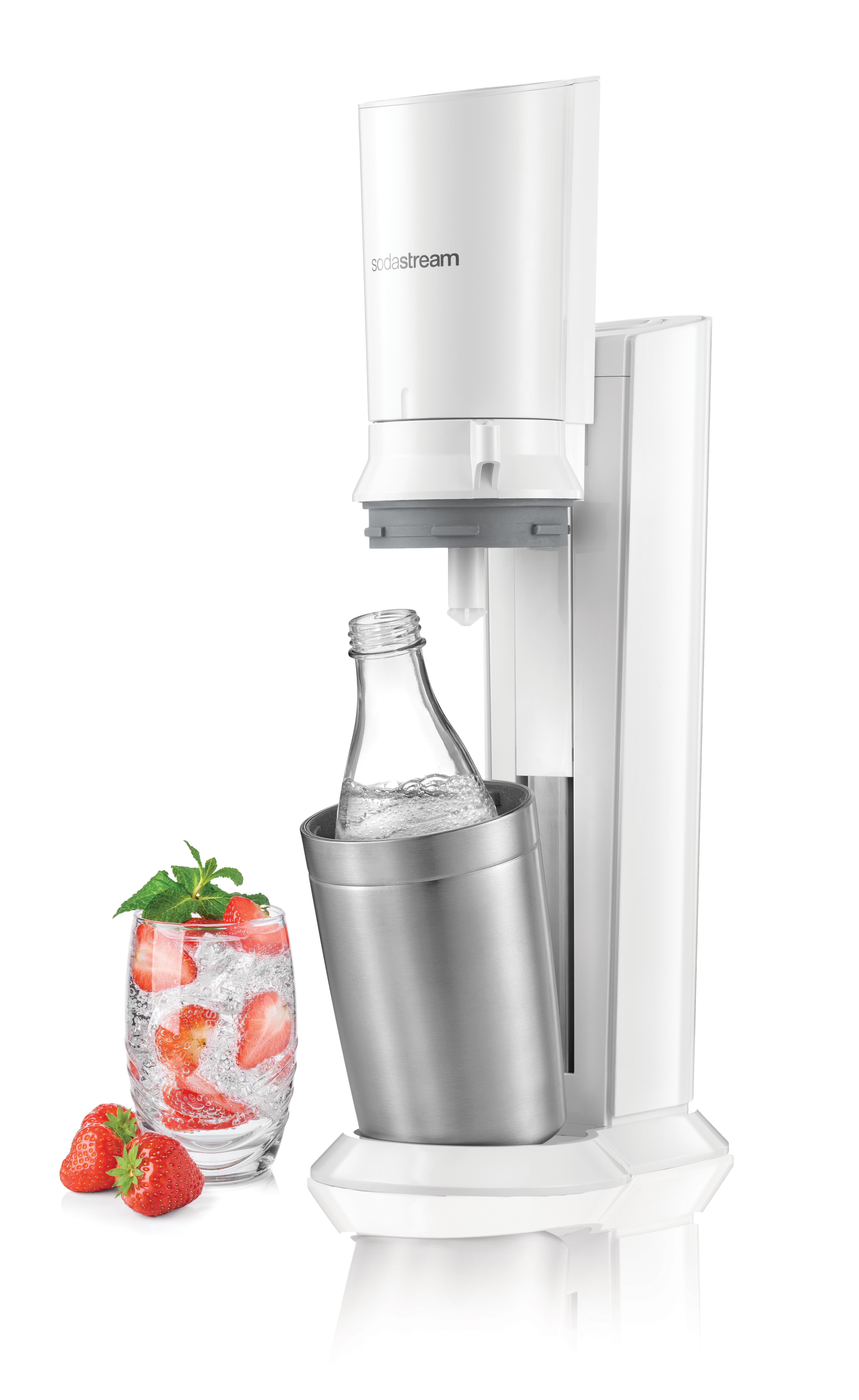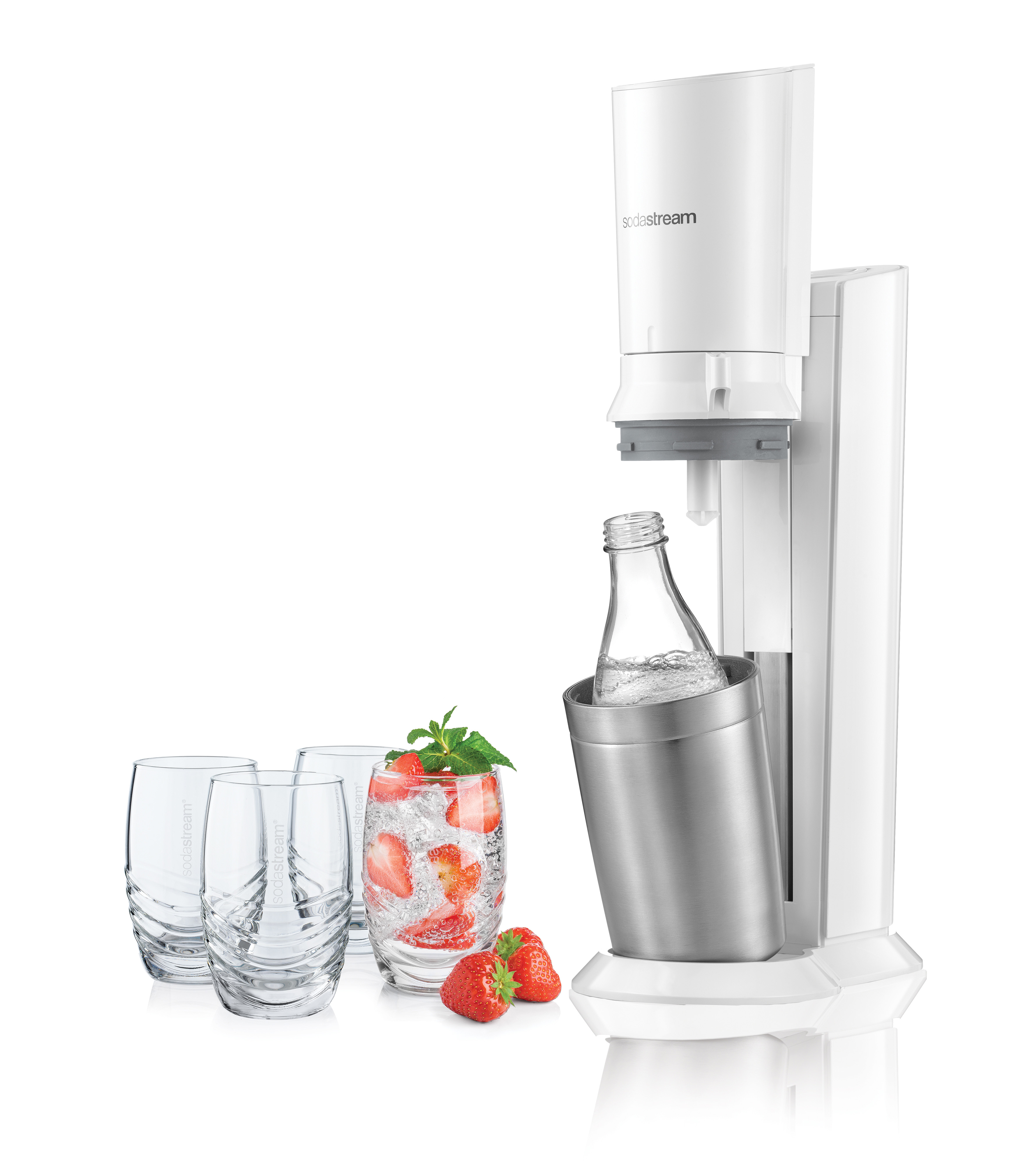 Výrobníky Crystal jsou k dostání v bílém a nově také v designovém metalicky černém provedení. Součástí balení je výrobník SodaStream, opakovaně použitelná skleněná nápojová lahev o objemu 0,7 l a bombička s potravinářským CO2 plynem až na 80 l perlivé vody.