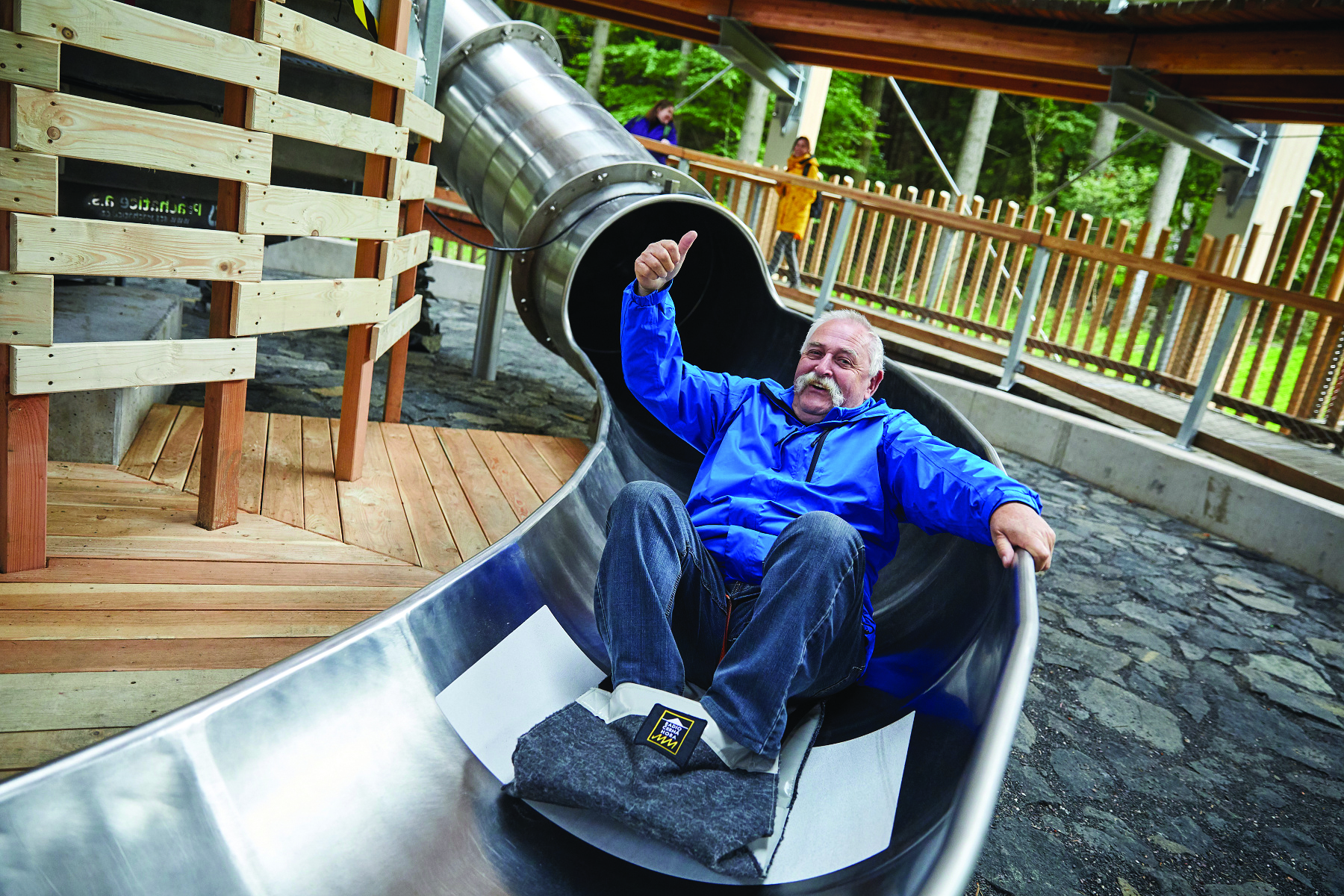 Na trase dlouhé více než 1500 m na vás čekají nové zajímavosti a zážitky. Na celé Stezce je na zábradlí 40 skleněných cedulek s kukátky, a právě pohledem skrze ně se dozvíte zajímavosti o lese kolem vás. Vrchol Stezky se nachází ve výšce 45 m, kde si budete moci užít okolní krásy smíšeného krkonošského lesa. Cestu dolů si pak můžete zkrátit a urychlit tobogánem, jehož tubus je dlouhý 80 metrů. Původně byl tobogán určen pro děti, ale hojně jej využívají všichni návštěvníci, včetně seniorů. Zatím nejstaršímu jezdci na tobogánu bylo úctyhodných 85 let. Za pěkného počasí letíte v tobogánu rychlostí 30 km/h, za špatného počasí tobogánem sjet možné není.