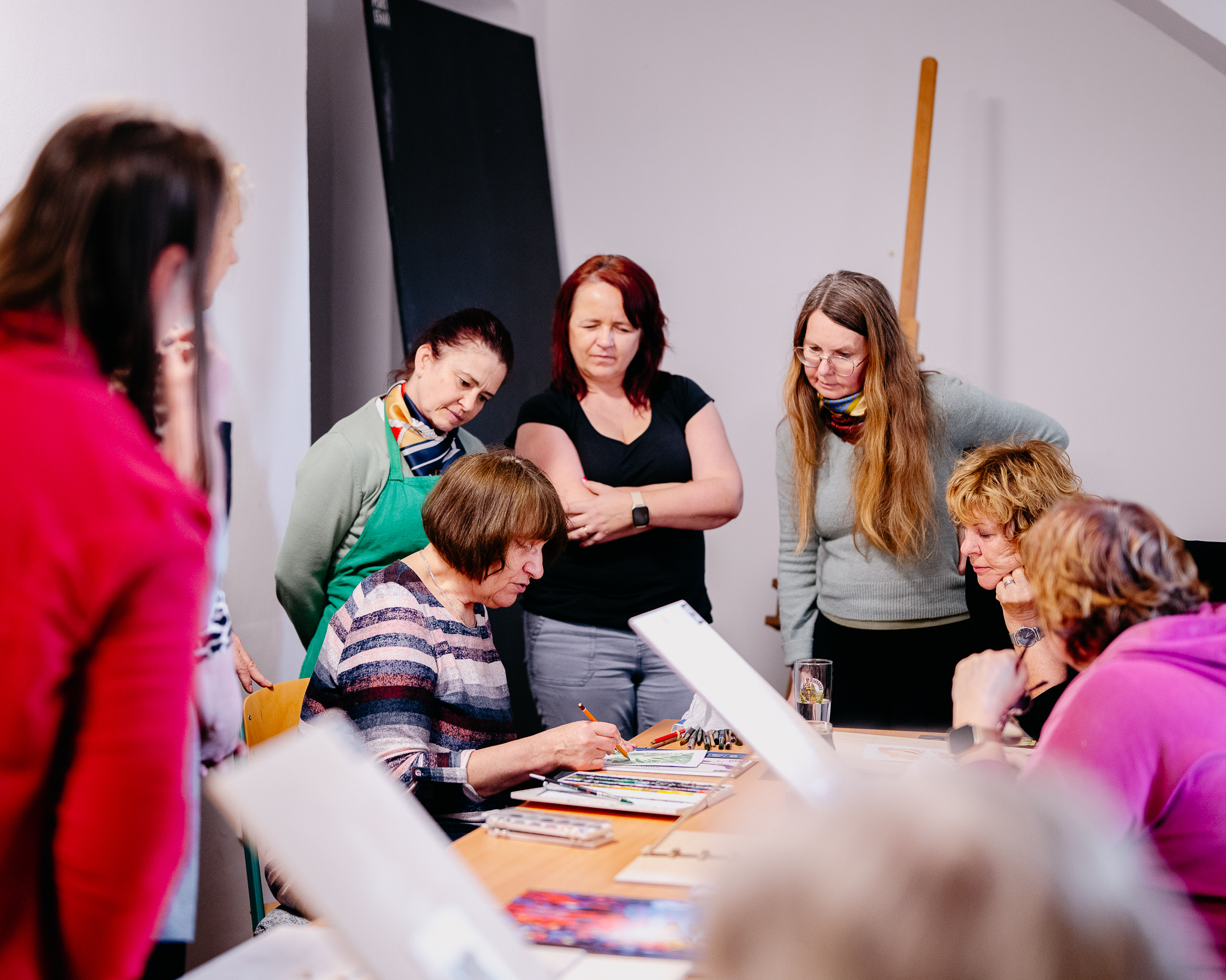 Každý čtvrtek se v renesančním paláci Anny z Rogendorfu roztočí lisy, vytáhnou gelové podložky a rozehrají barvy. Otevřená dílna pod vedením zkušených lektorů je určena všem – bez ohledu na věk či zkušenosti. Ať už si chcete vyrobit originální přání, pohled nebo si jen zkusit linoryt, frotáž či suchou jehlu, čtvrtek je ideální den. Z každého setkání si účastníci odnesou 5 vlastních grafik – zážitek, který jen tak nevybledne.