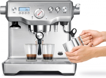 Snadnou a rychlou přípravu vícero druhů kávy ve špičkové kvalitě umožní pákový kávovar Catler ES 9010 Espresso Dual Boiler™, prémiový model, který přináší vlastnosti profesionálních kávovarů do domácnosti. Speciálně navržené funkce z něj dělají prémiový model, s nímž se káva stává opravdovým gurmánským zážitkem. Kávovar disponuje trojitým vyhřívacím systémem – dvěma nerezovými ohřívači vody a aktivně prohřívanou spařovací hlavou. Důvodem k tomuto ztrojení je možnost současně pěnit mléko a extrahovat kávu. Zároveň má model dvě samostatná čerpadla pro přípravu kávy a generování páry. Teplota extrakce kávy je samostatně programovatelná podobně jako teplota páry, doba či objem extrakce. Na LCD displeji se zobrazují tři údaje: teplota extrakce, doba extrakce a čas, přičemž nastavení doby a výkonu je individuální. Pákový kávovar má bohaté příslušenství, k němuž patří 58 mm nerezový držák filtru, 58 mm tamper, nerezová nádobka pro napěnění mléka, pomůcka pro dávkování kávy Razor či filtry s jednoduchým nebo dvojitým dnem pro 1 nebo 2 šálky. Vše má své místo v integrované zásuvce.