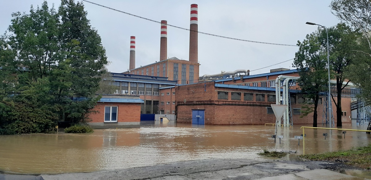 Teplárna Krnov – voda sahala ke dvěma metrům