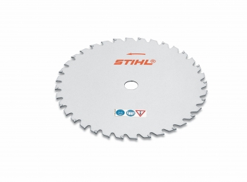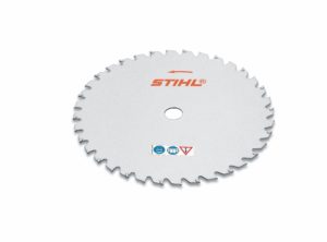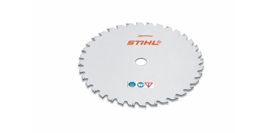 Speciální nástroj z ocele pro křovinořezy a vyžínače od středního výkonu. Na sukovité křoviny a tenké kmeny stromů, pro prořezávku a klučení.