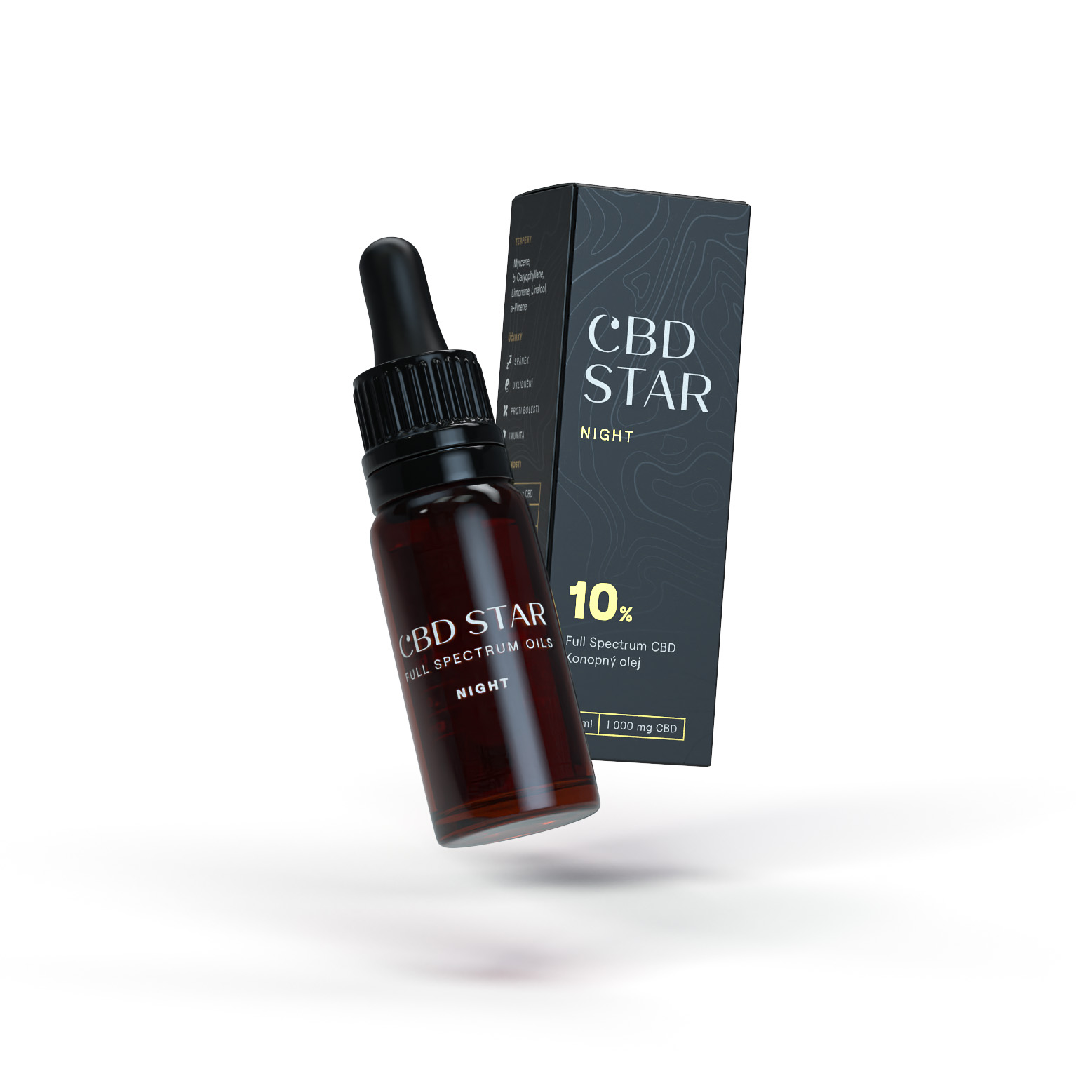 Stres a množství povinností nás obírá o síly a energii. Full Spectrum CBD olej NIGHT s kanabinolem (CBN) a terpenem myrcen pomůže tělu i mysli regenerovat se tím nejpřirozenějším způsobem – kvalitním spánkem. Unikátní receptura různých kanabinoidů, terpenů, flavonoidů, fenolů a vitamínů pomáhá navodit klid potřebný pro uspávání a nepřerušovaný spánek. Jeho účinky oceníte i při překonání tzv. jet lagu.