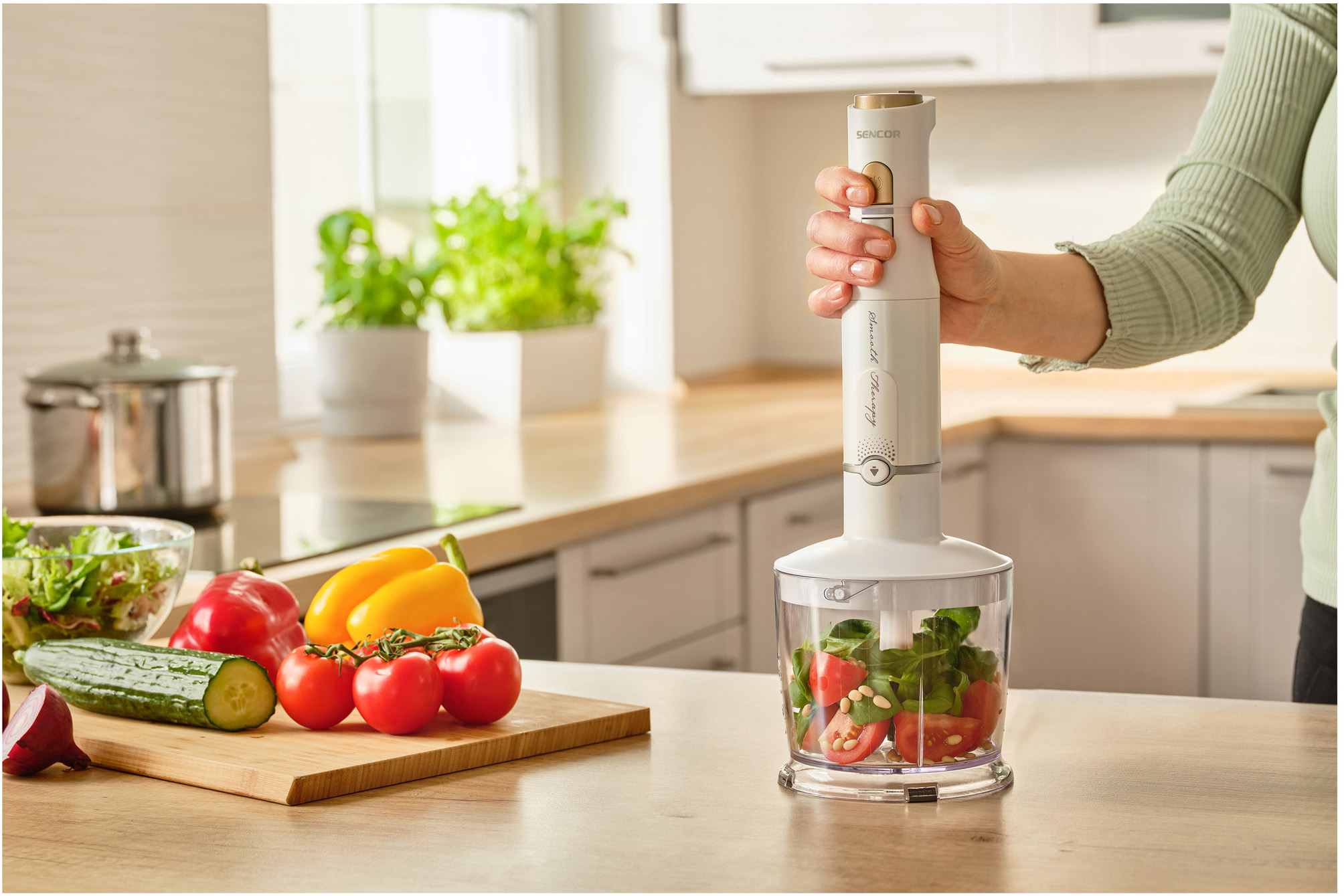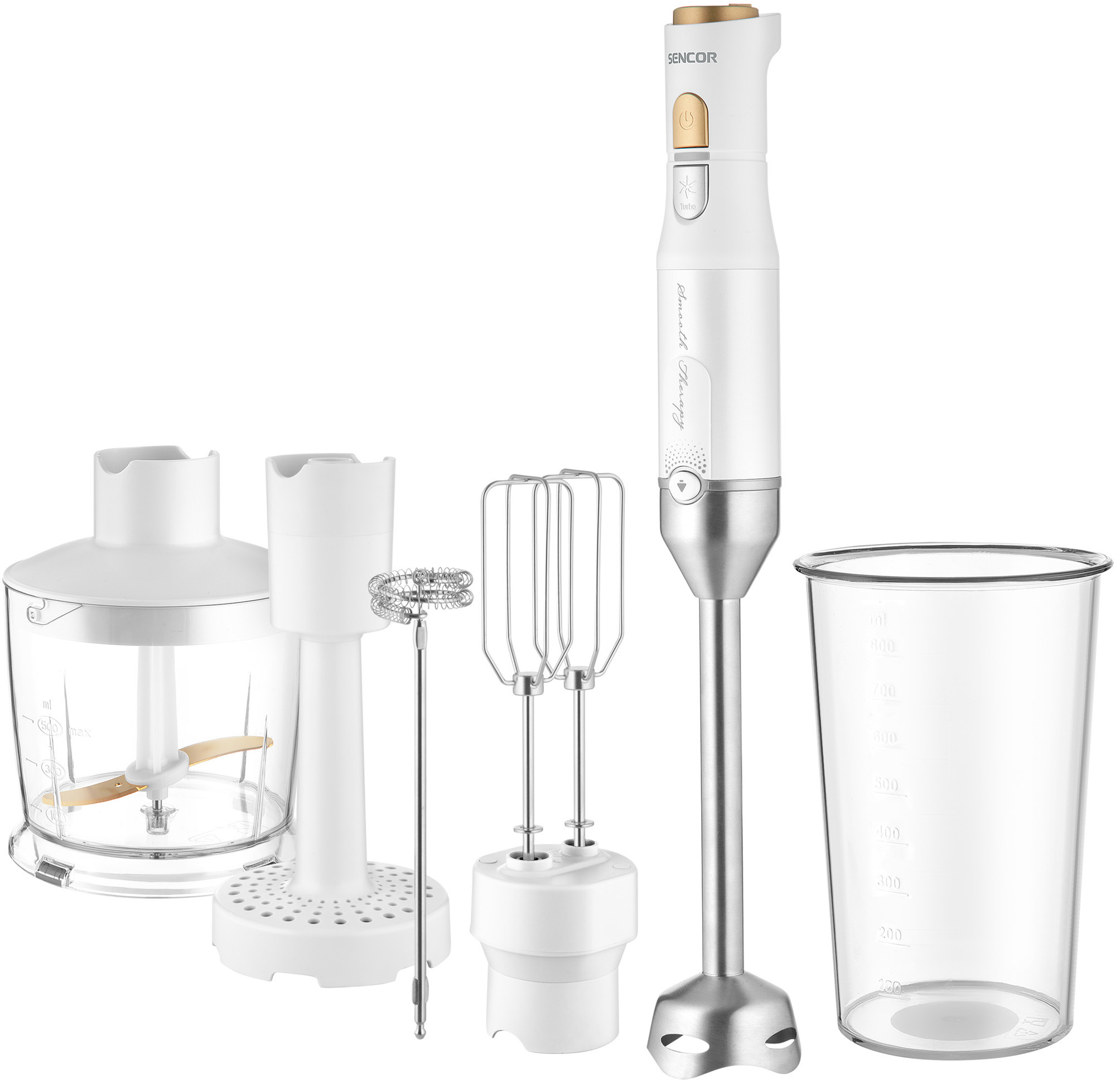 Tyčový mixér Sencor SHB 6442BK značky Sencor přináší do kuchyně výkonnost a variabilitu. Díky technologii TITANIUM QuadBlade se stává ideálním nástrojem pro mixování, šlehání a krájení. Ergonomická rukojeť zajišťuje pohodlné a bezpečné držení během přípravy. Bohaté příslušenství, včetně pěniče mléka, mixéru s noži a nádobou 500 ml, dvojitého šlehače, mačkadla na brambory a nádoby s víkem 800 ml, poskytuje neomezené možnosti kulinářského tvoření. S tlačítkem pro snadné uvolnění příslušenství je obsluha mixéru intuitivní a pohodlná. Díky univerzálnosti a modernímu designu je tyčový mixér SHB 6442BK skvělým společníkem pro každou kuchyň.