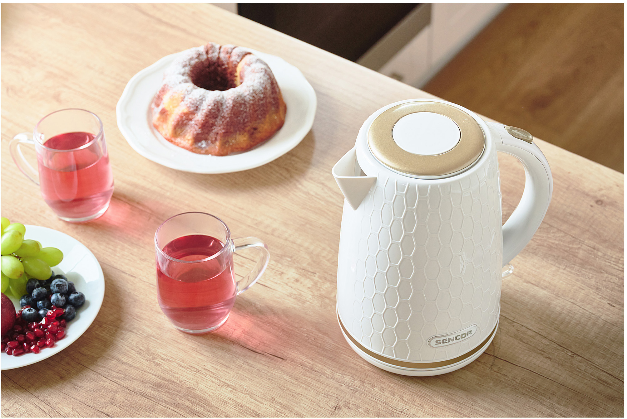 Nadčasový design konvice Sencor SWK 7200 od Sencor s objemem 1,7 litru je ideální pro přípravu čaje či kávy pro celou rodinu. Oboustranný vodoznak zajišťuje přesné měření a tlačítko na otevírání víka usnadňuje plnění vodou. S funkcí automatického vypnutí po dosažení varu nebo po odebrání konvice ze základny je konvice SWK 7200 nejen efektivní, ale i bezpečná.