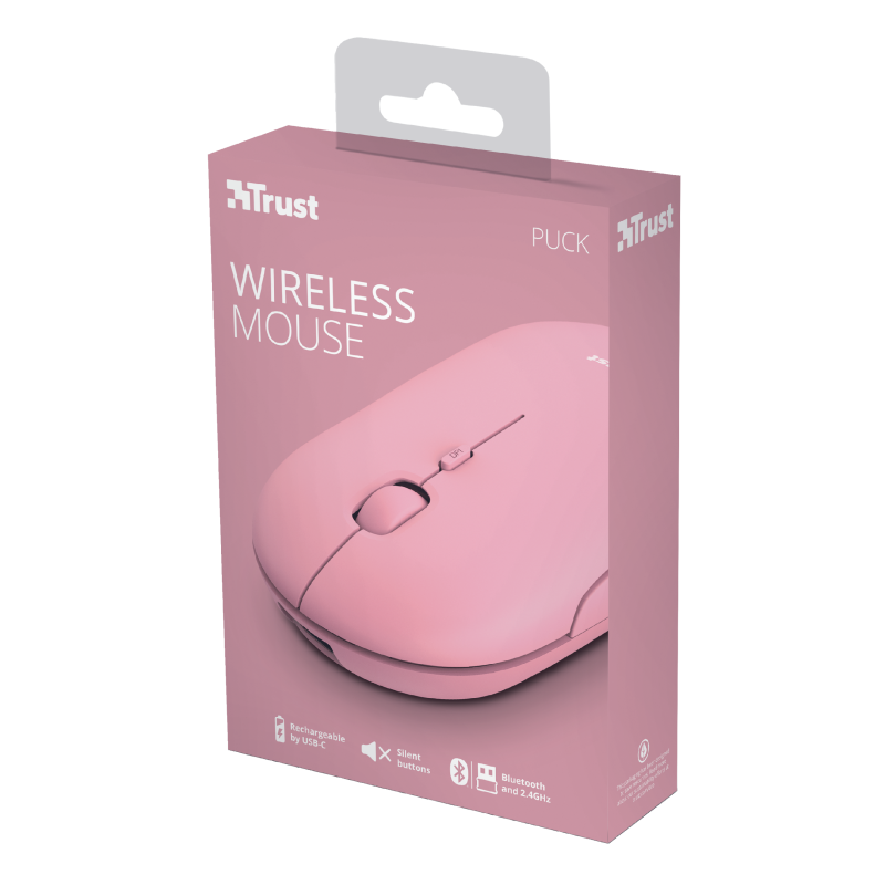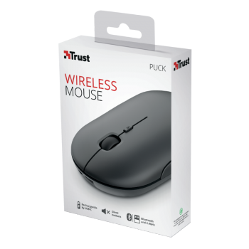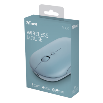 Nově představená myš Trust Puck je vhodná pro aktivní pracující či studenty, kteří často mění místo svého působiště. Je silná pouze 27 mm a lze ji tak umístit do jakékoliv menší kapsy, příruční tašky či kabelky. Myš Trust Puck je vybavena duálním bezdrátovým připojením – buď pomocí vloženého WiFi donglu či přes Bluetooth. Je tak možné si například dongle (USB micro přijímač) nechat doma zasunutý ve stolním počítači a na cestách s notebookem využívat Bluetooth připojení.