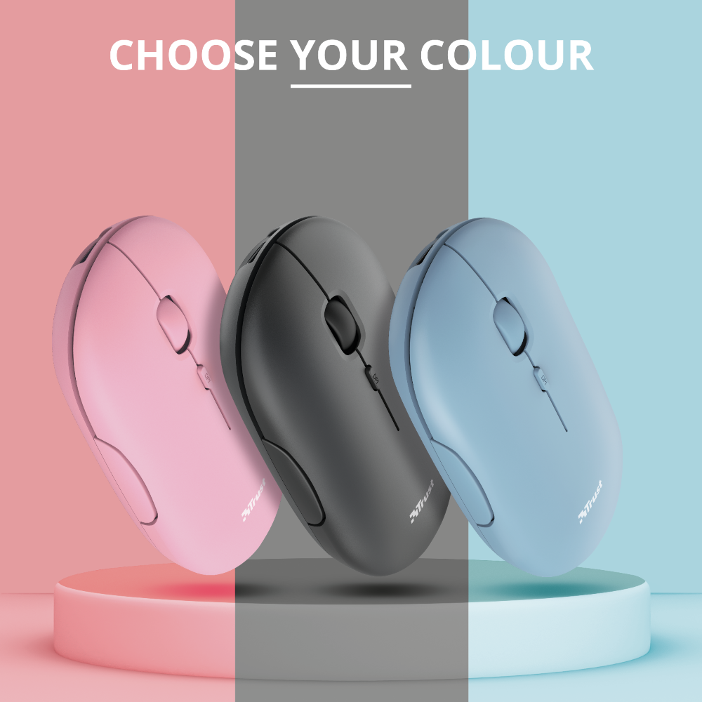 Nově představená myš Trust Puck je vhodná pro aktivní pracující či studenty, kteří často mění místo svého působiště. Je silná pouze 27 mm a lze ji tak umístit do jakékoliv menší kapsy, příruční tašky či kabelky. Myš Trust Puck je vybavena duálním bezdrátovým připojením – buď pomocí vloženého WiFi donglu či přes Bluetooth. Je tak možné si například dongle (USB micro přijímač) nechat doma zasunutý ve stolním počítači a na cestách s notebookem využívat Bluetooth připojení.
