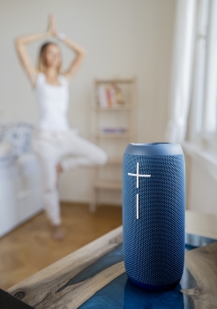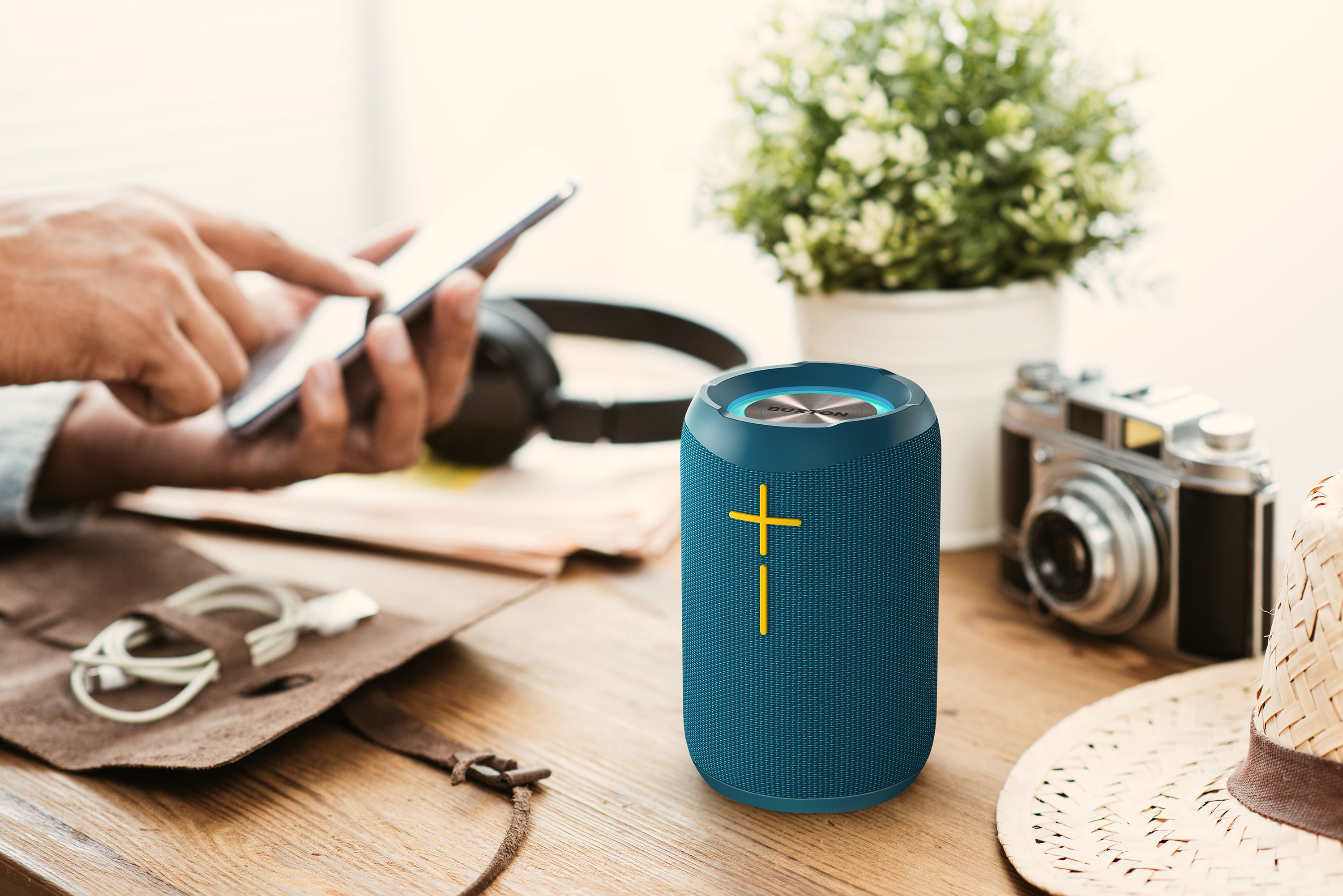 je kompaktní a stylový reproduktor, který nabízí až 11 hodin přehrávání. Díky krytí IPX7 jej můžete vzít k vodě i na lyže. Světelné efekty při přehrávání i technologie Power Bass a možnost propojení s druhým – True Wireless Stereo z něj činí malého párty společníka. Díky jeho velikosti se skvěle přenáší a vejde se do batohu či kabelky. A můžete jej použít i jako handsfree.