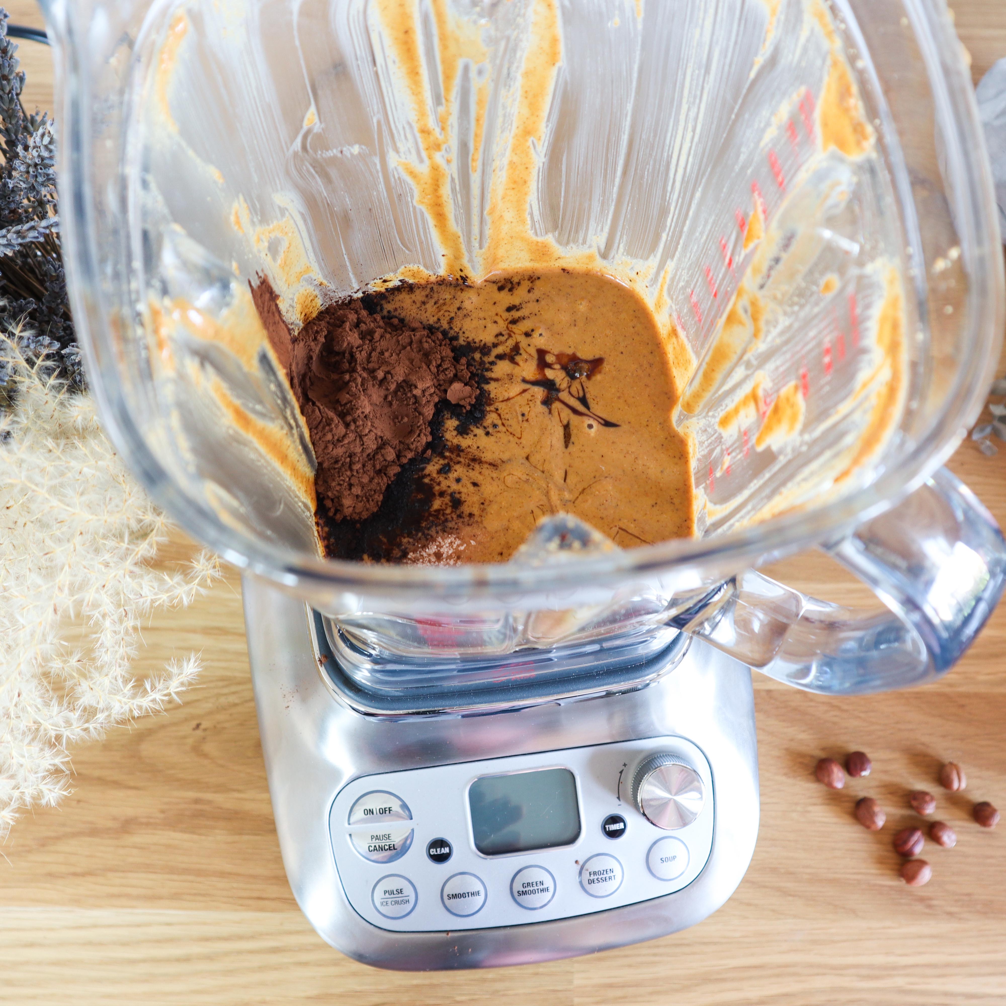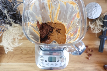 - K hotovému oříškovému máslu přidejte další ingredience a nechte je v mixéru promíchat. Případně můžete ingredience míchat už v misce. Kakaový prášek zahustí oříškové máslo. Pokud chcete mít nutellu v tekuté konzistenci, přidejte kokosový tuk.