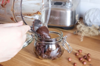 - Hotovou nutellu ještě dochuťte podle své chuti přidáním sirupu anebo soli. Přendejte ji do uzavíratelné skleničky a skladujte v chladu a temnu :).