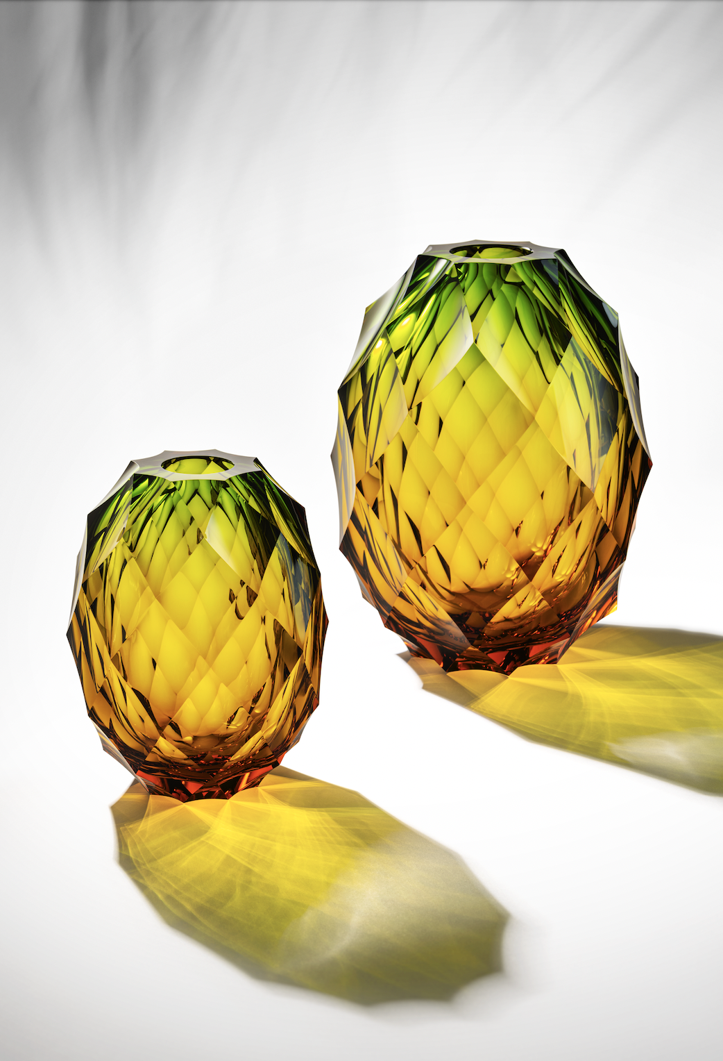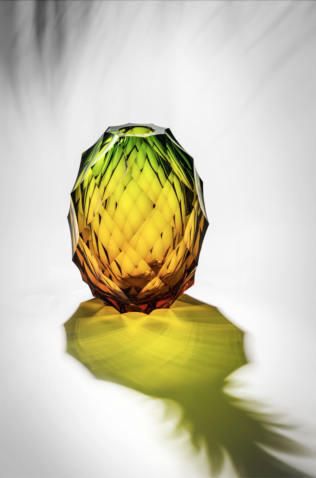 Exotické ovoce po mnoho staletí symbolizovalo pohostinnost, slavnostní atmosféru, vřelé přivítání stejně jako úspěšnou úrodu. Díky svému specifickému vzhledu bylo zároveň i ozdobou královských tabulí. Každý dílek povrchu kůry patří do tří různých spirál. Počty jednotlivých spirál jsou přitom vyjádřeny Fibonacciho posloupností. Přírodní jev do skla zrcadlený dělá z vázy Ananas objekt, který si okamžitě podmaní každého milovníka užitného umění stejně jako každý prostor, do kterého bude instalován. Od července bude možné si vázu o velikosti 21 cm objednat ve všech prodejních galeriích značky Moser či na www.moser.com. Větší verze (o velikosti 30 cm) bude vzhledem k náročnosti zhotovení především velmi sofistikovaného brusu vyrobena pouze v limitovaném počtu 100 kusů.