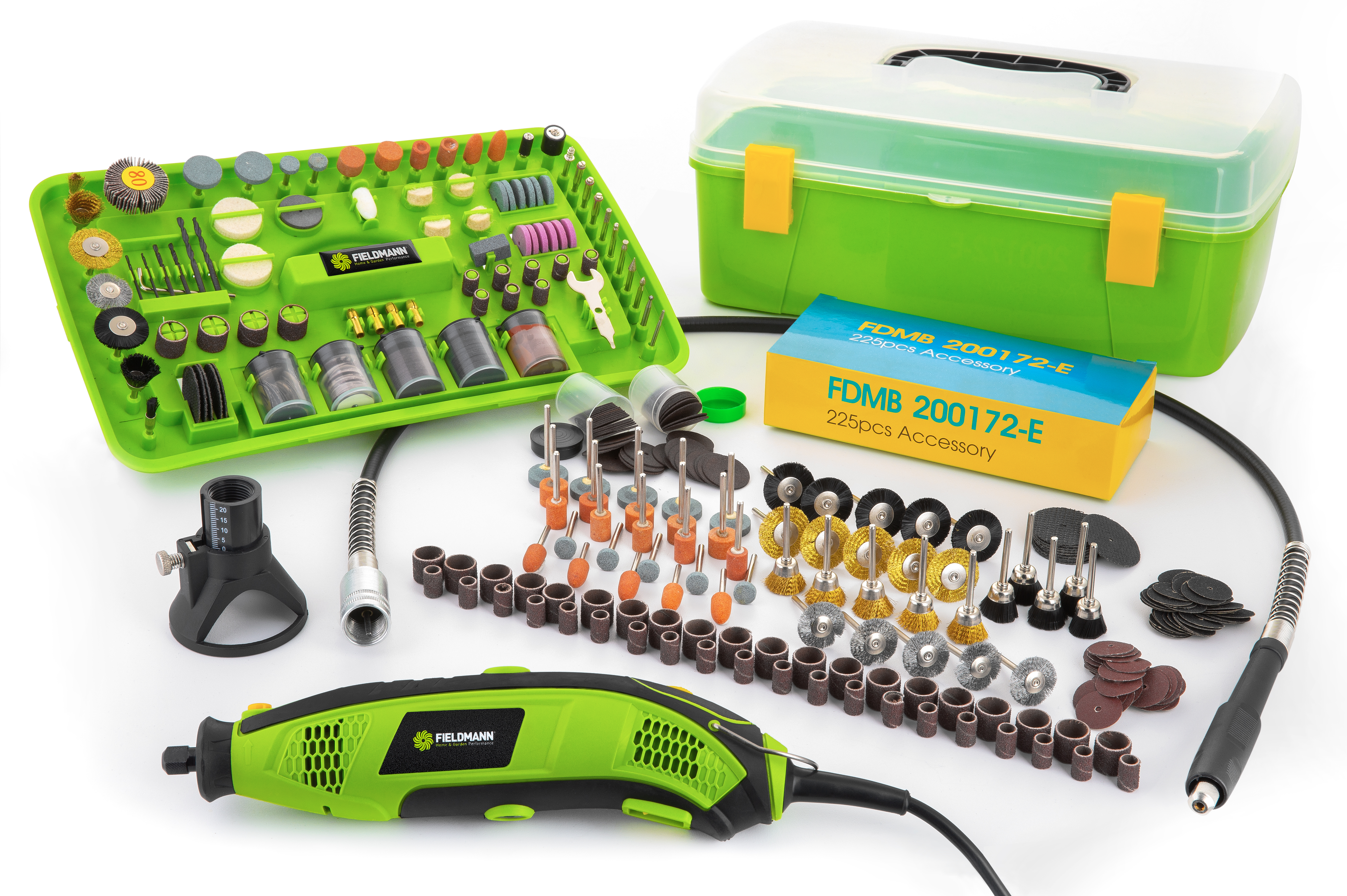 Na tu nejjemnější práci je určena modelářská bruska Fieldmann FDMB 200172-E. Příslušenství obsahuje až 440 nejrůznějších nástavců a kusů příslušenství, se kterými je možné detailně opracovat i ten nejmenší kousek materiálu. S výkonem 170 W, kvalitním ergonomickým úchopem a s velikostí sklíčidla v rozsahu 0,8 – 3,2 mm vystačí modelářská bruska Fieldmann na všechny běžné situace v modelářském světě.